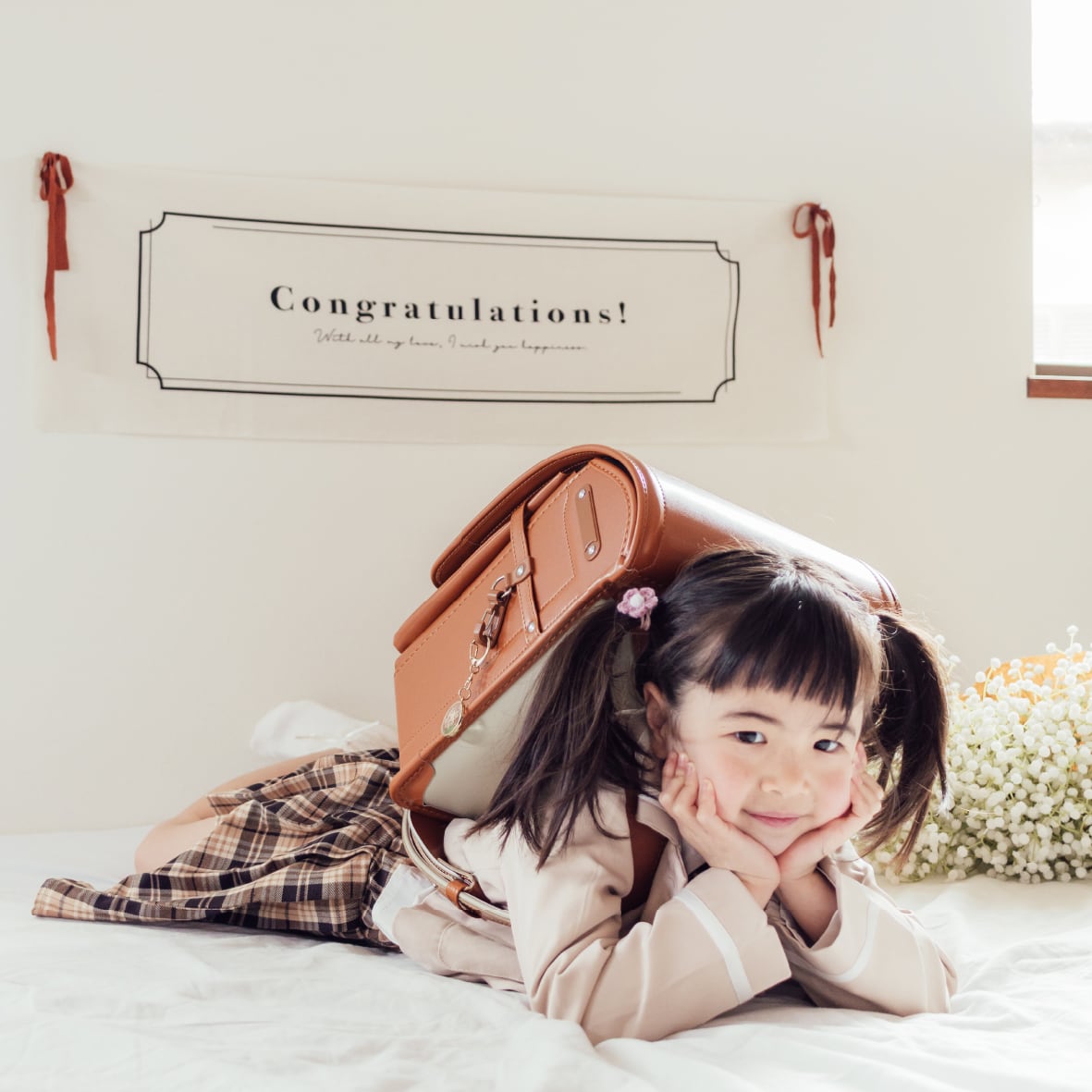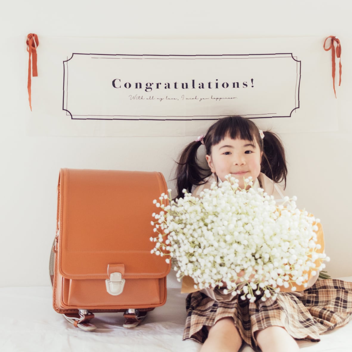 ランドセル姿や制服姿と合わせるだけで